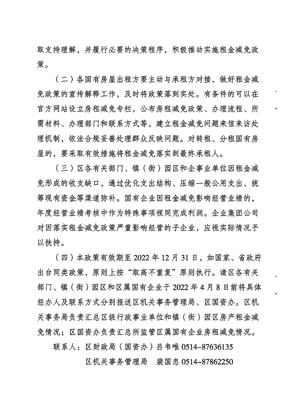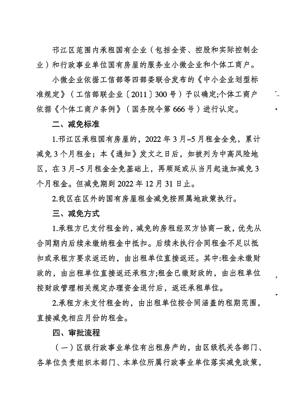 關(guān)于減免2022年國有房屋租金操作實(shí)施細則的通知